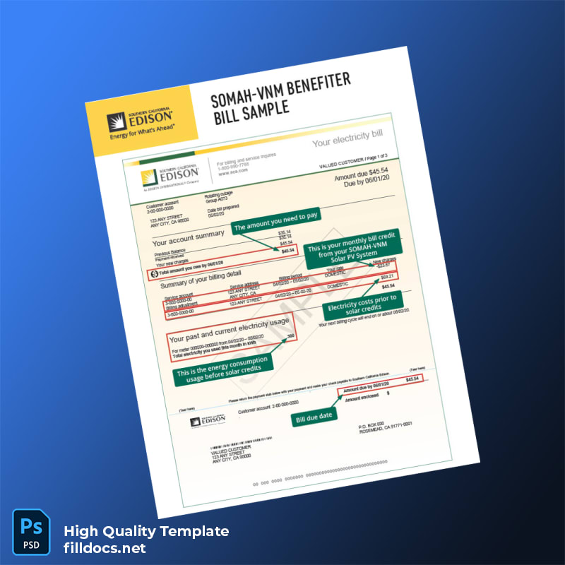 United States Southern California Edison Editable Utility Bill Template in Word and PDF Formats