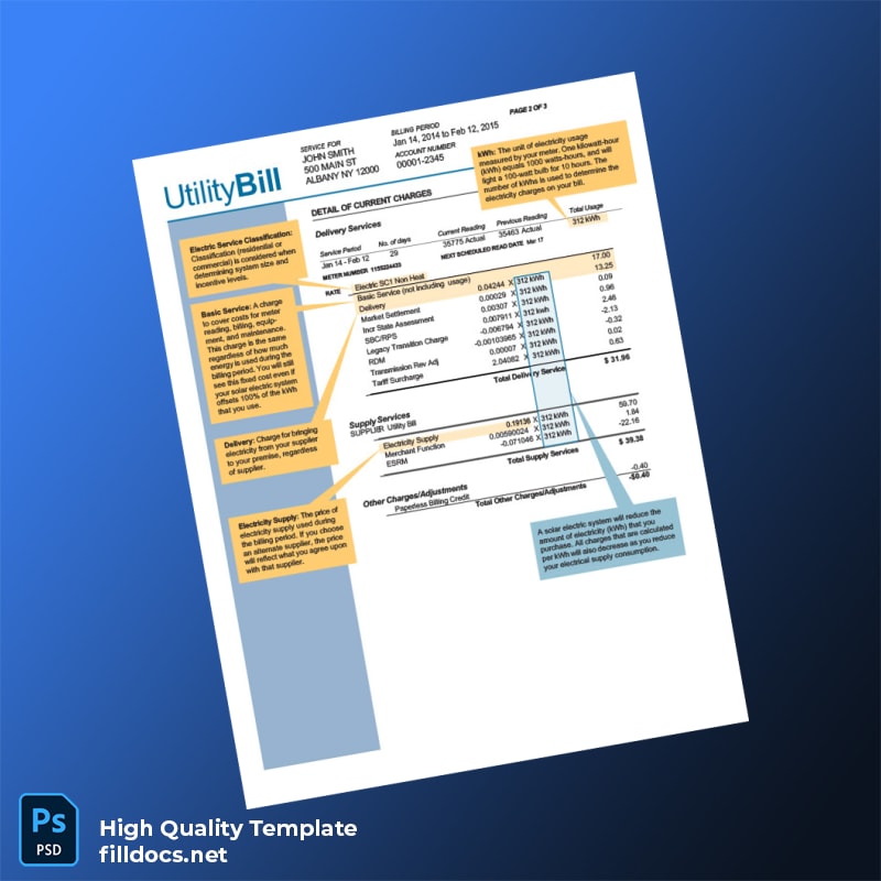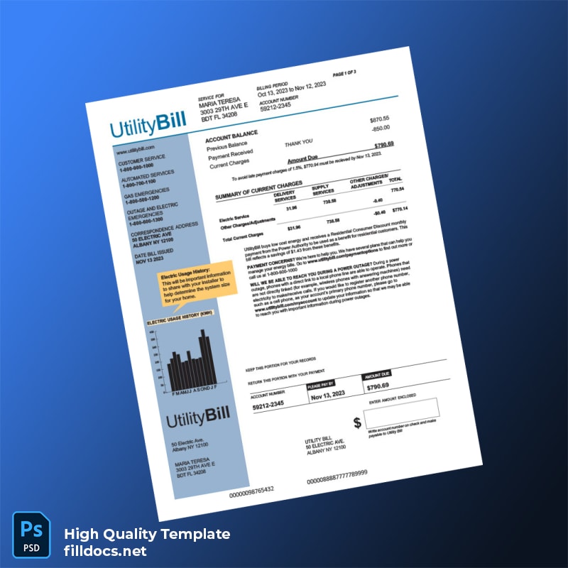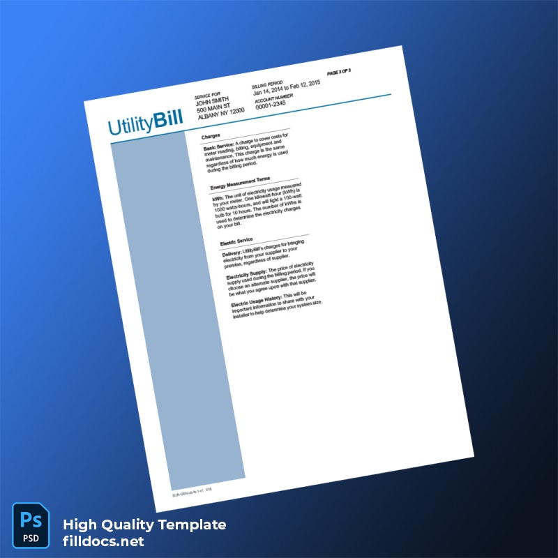 United States Utility Bill Editable Utility Bill Template in Word and PDF Formats