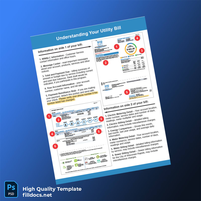United States Wisconsin Rapids Water And Light Commission Editable Utility Bill Template in Word and PDF Formats