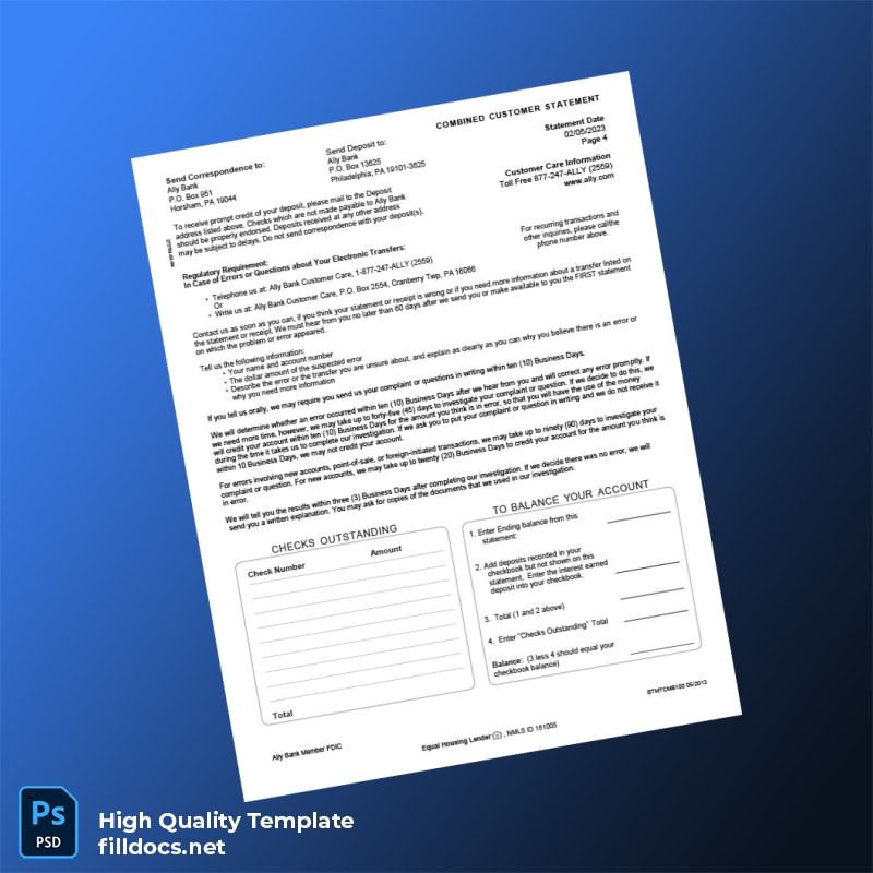 USA Ally Bank Statement Template in Word and PDF formats 4 page