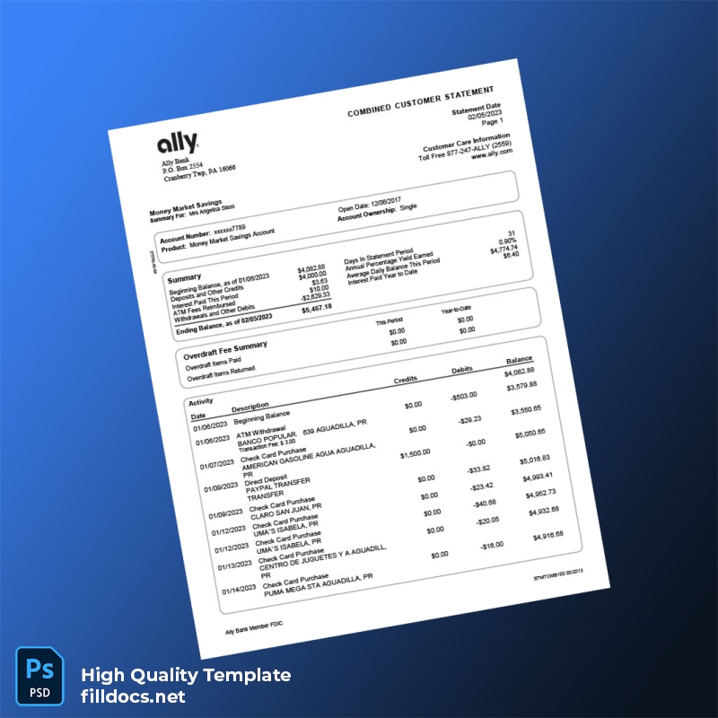 Are you struggling to provide legitimate proof of income or bank activity? Whether you’ve misplaced your bank statement, need a replacement for a stolen document, or require an update for an expired version, our USA Ally Bank Statement Template is here to ensure you get the information you need without any hassle.
