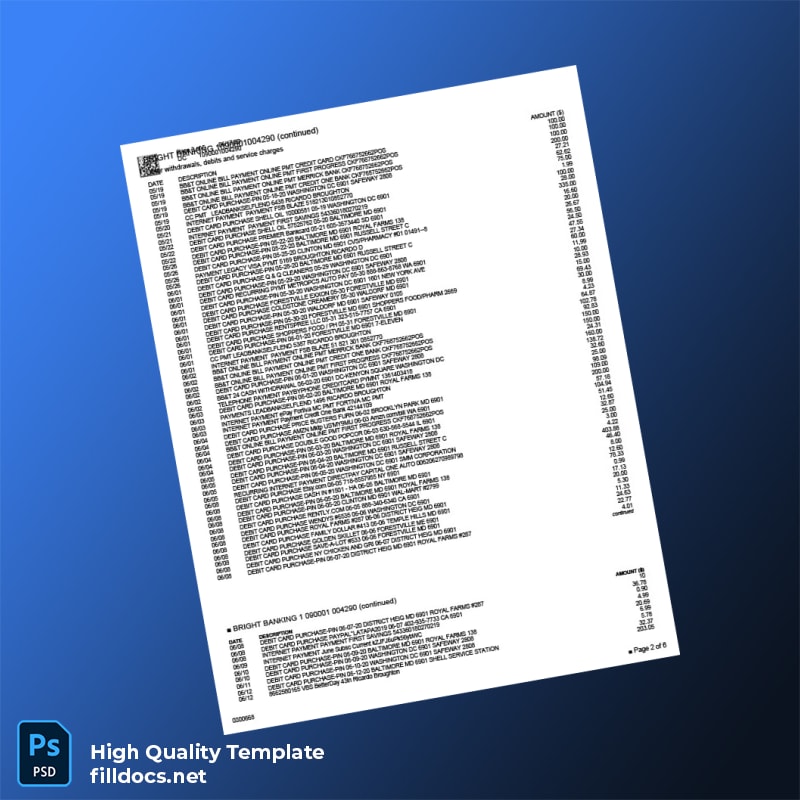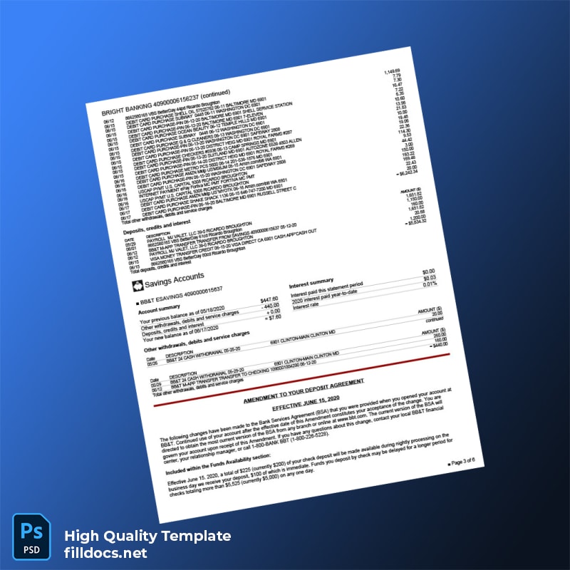USA BB T Bank Statement Template in Word and PDF formats 6 page