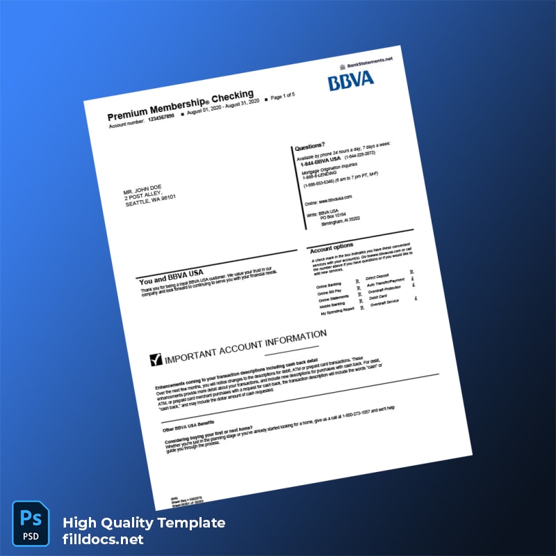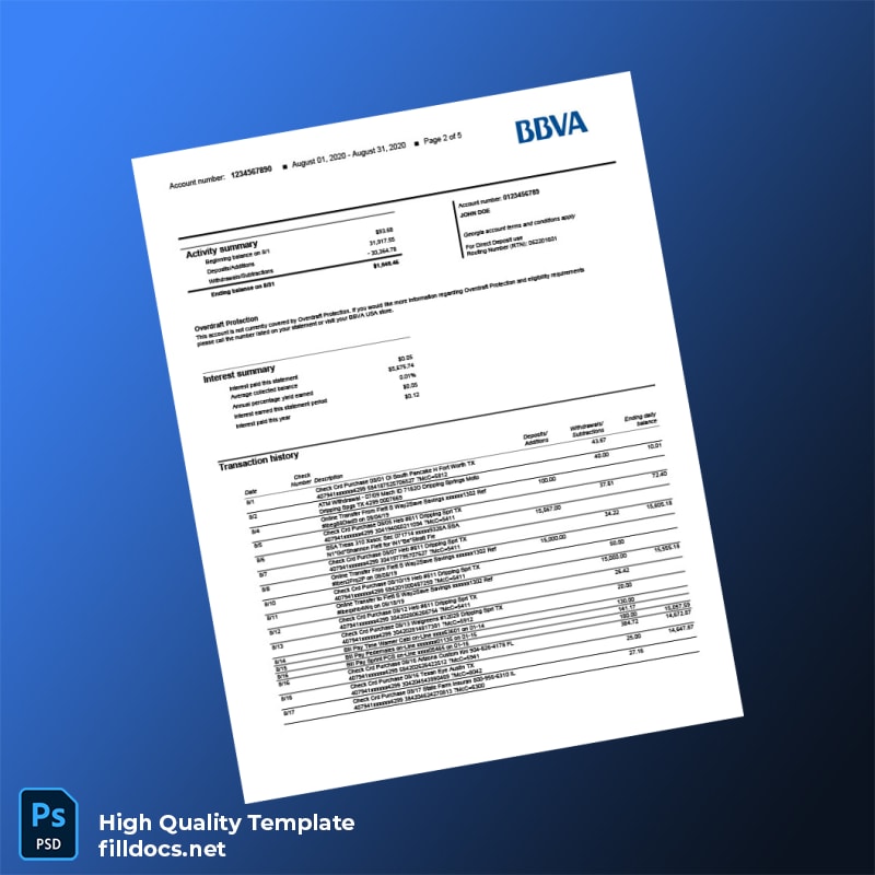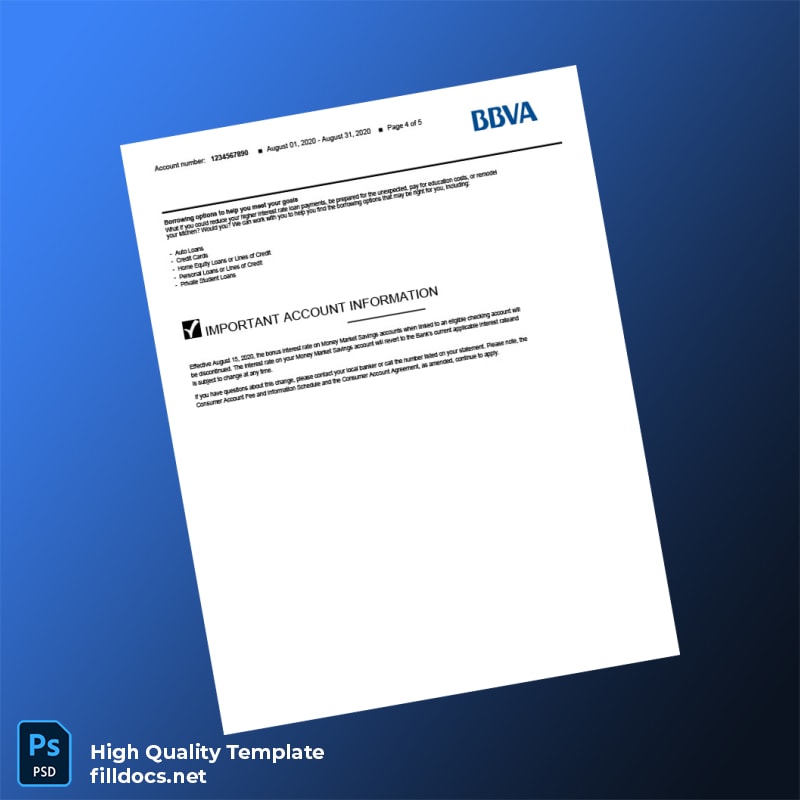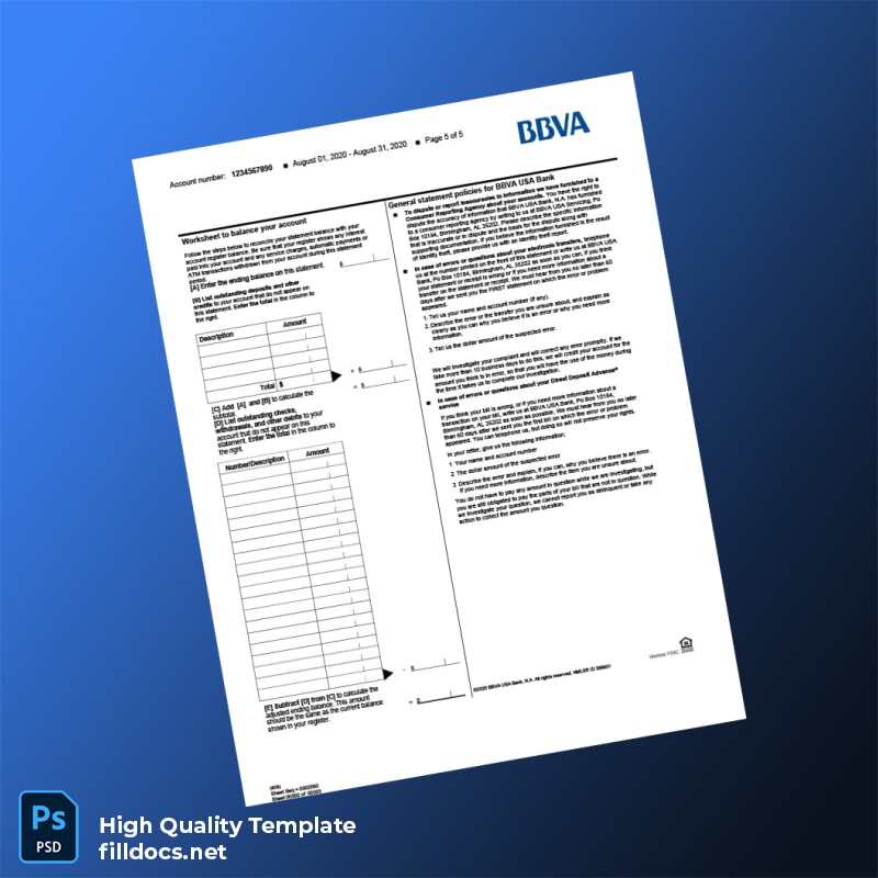 USA BBVA Bank Statement Template in Word and PDF Formats