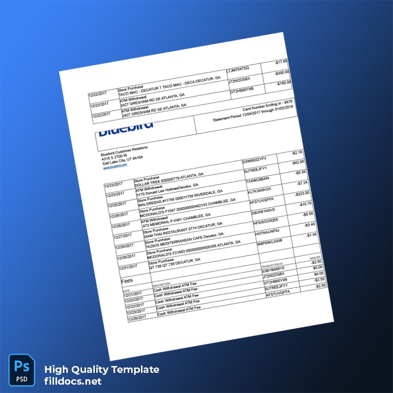 The USA Bluebird Bank Statement Template in Word and PDF formats provides a crucial solution for professionals in need of reliable, editable documentation. With seamless customization options, meet your legitimate requirements swiftly and effectively.