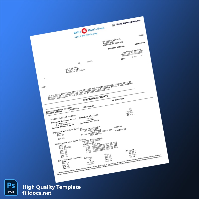 USA BMO Harris Bank Statement Template – Hassle-Free Replacement Solution