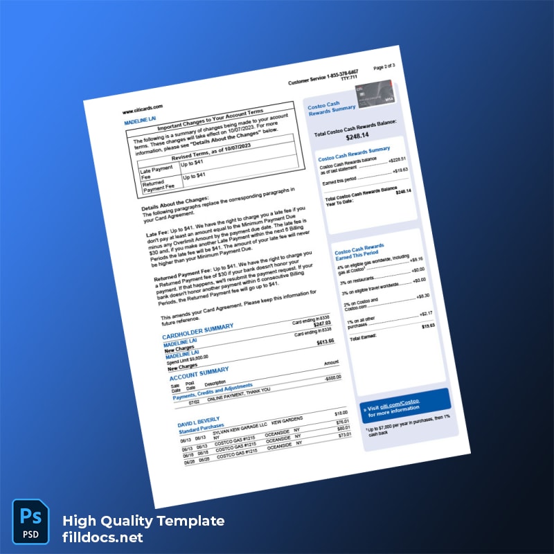 USA Citi Bank Statement Template in Word and PDF formats 4 page