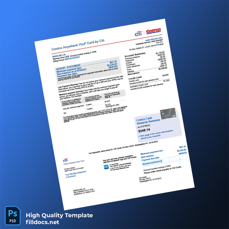 Be the first to review “USA Citi Bank Statement Template in Word and PDF formats 4 page”