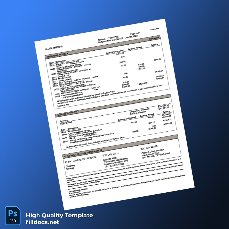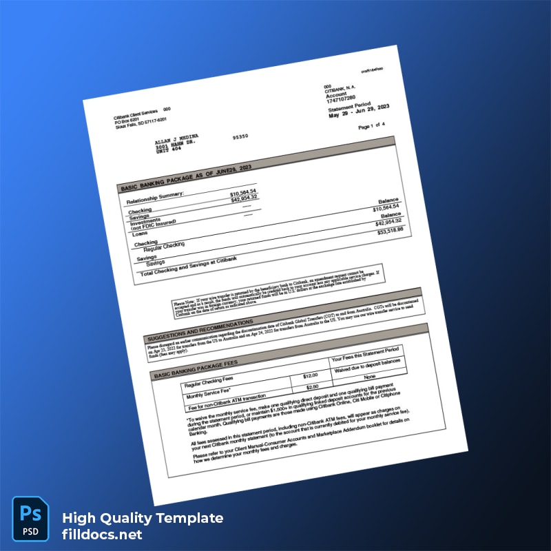 USA Citibank Bank Statement Template in Word and PDF formats 4 page