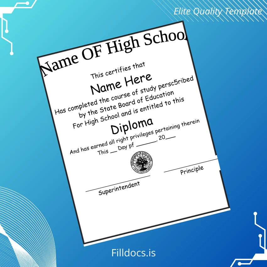 Discover the USA High School Name High School Diploma Template – Word/PDF, a meticulously crafted digital diploma download perfect for replacement certificates or novelty diploma design needs. This fillable diploma certificate template is designed for professionals seeking a customizable degree template that balances ease of use with professional results. Whether you lost your original diploma, need a blank diploma form for events, or want a quick replacement, this editable diploma template offers a seamless solution.