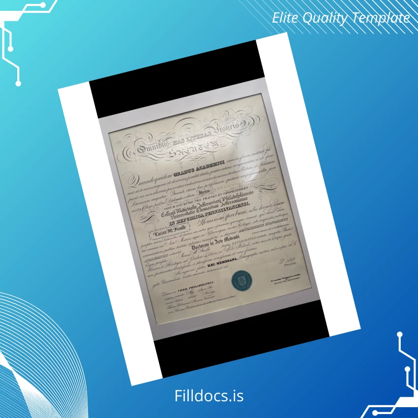 Fillable USA Jefferson Medical College Doctor of Medicine Template – Word/PDF to easily customize and print your professional diploma certificate.