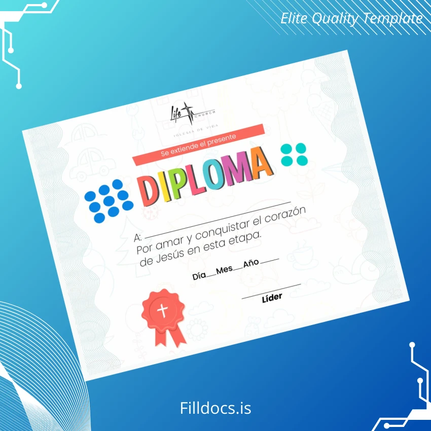 This template provides a blank diploma form that allows you to customize graduate details and institutional information effortlessly. It is tailored for users who want a fast digital diploma download solution that upholds formal design standards of USA Life Church diplomas. Whether you are replacing a lost certificate or creating a new document, it offers a novel design ready for immediate use.