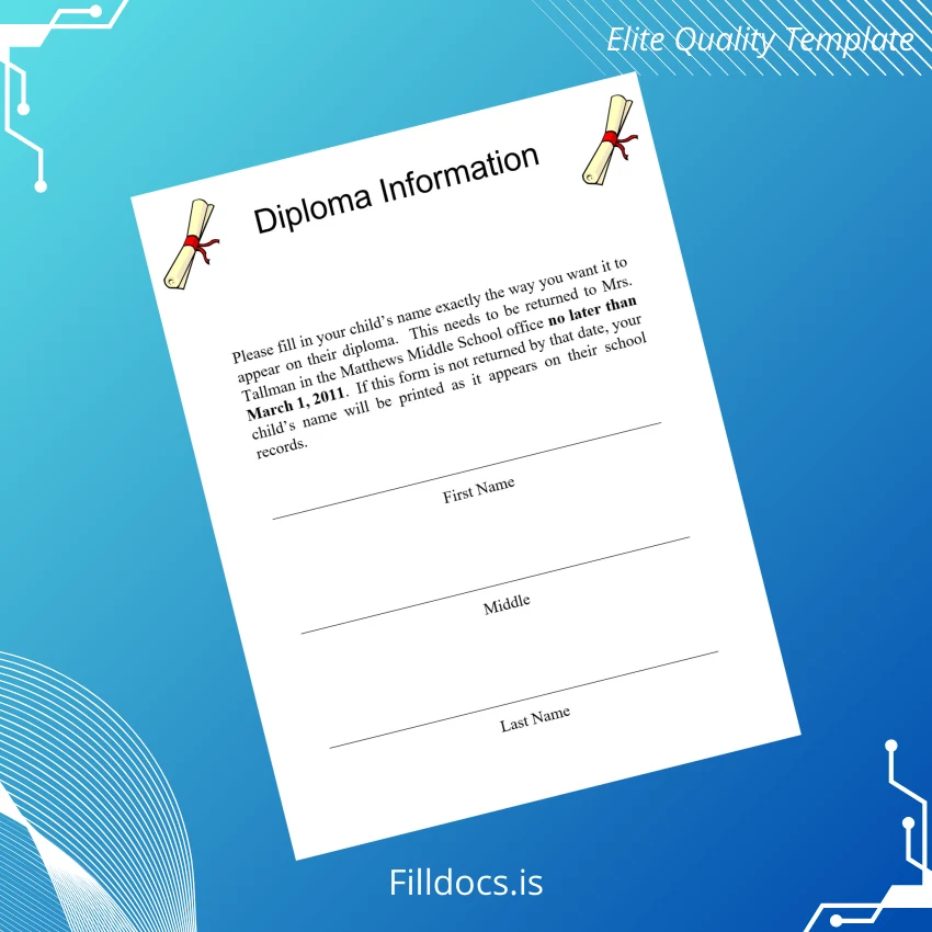 Fillable USA Matthews Middle School High School Diploma Template – Word/PDF. Easily edit and print your replacement diploma with professional quality.