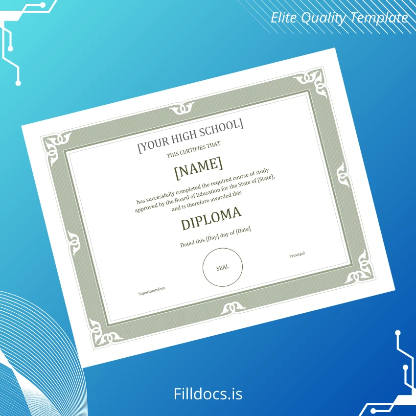 Discover the USA Your High School High School Diploma Template – Word/PDF, a versatile and professionally designed document that enables you to create a personalized high school diploma with ease. This editable diploma template is tailored for educators, students, and professionals who require a reliable, customizable replacement diploma form or a quality novelty diploma design for various official or creative purposes.